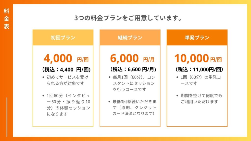 ※自分を知るインタビューセッションは、カウンセリングを目的としたものではありません。心の治療中の方は、事前に主治医やご担当のカウンセラーにご相談ください。